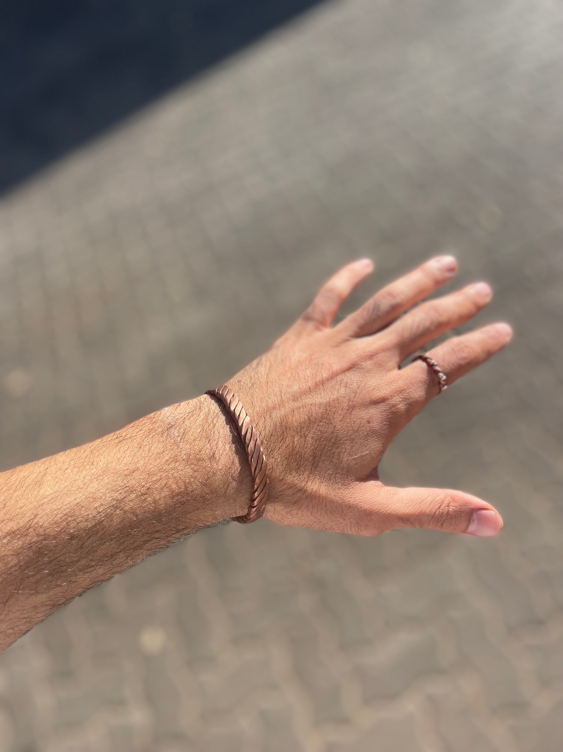 צמיד "קרן אור" עשוי נחושת איכותית ומעוצב בצורה עדינה להפליא, המקרינה תחושת רוך וחום. הקווים הנקיים של הצמיד מדמים קרני שמש הנמתחות סביב פרק היד ומעניקים תחושת זוהר פנימי לכל מי שעונד אותו. העיצוב המינימליסטי מאפשר לו להשתלב עם כל סגנון, בין אם מדובר במראה יומיומי או באירועים מיוחדים.
